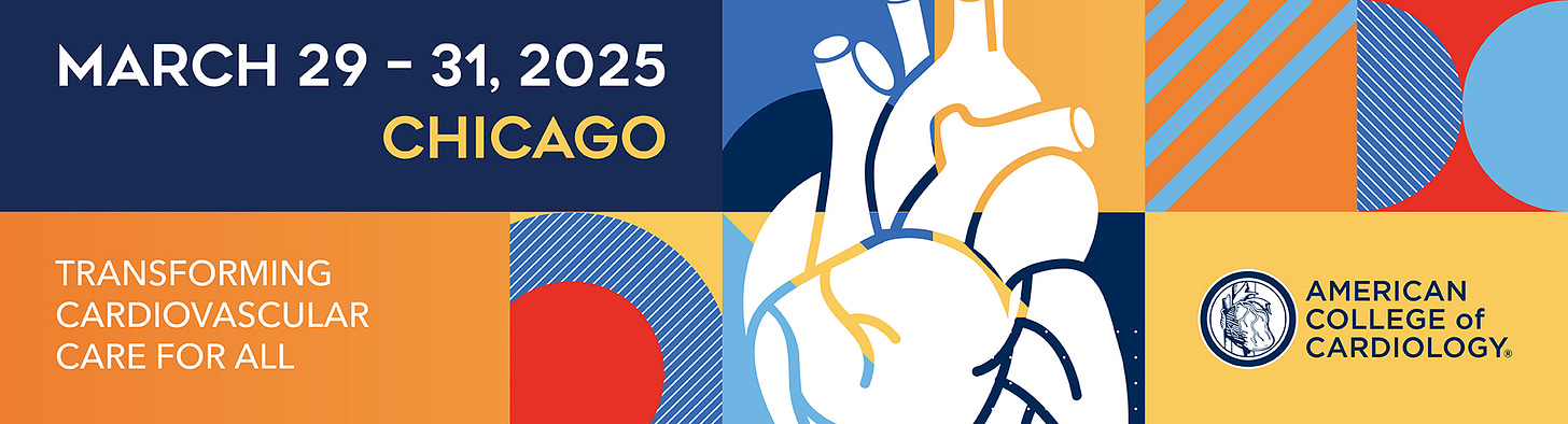 Começou! Finalmente podemos dar início ao ano científico na cardiologia, com o primeiro grande evento: o congresso do American College of Cardiology (ou apenas ACC 25) - quem disse que apenas no Brasil o ano só começa depois do Carnaval? rs