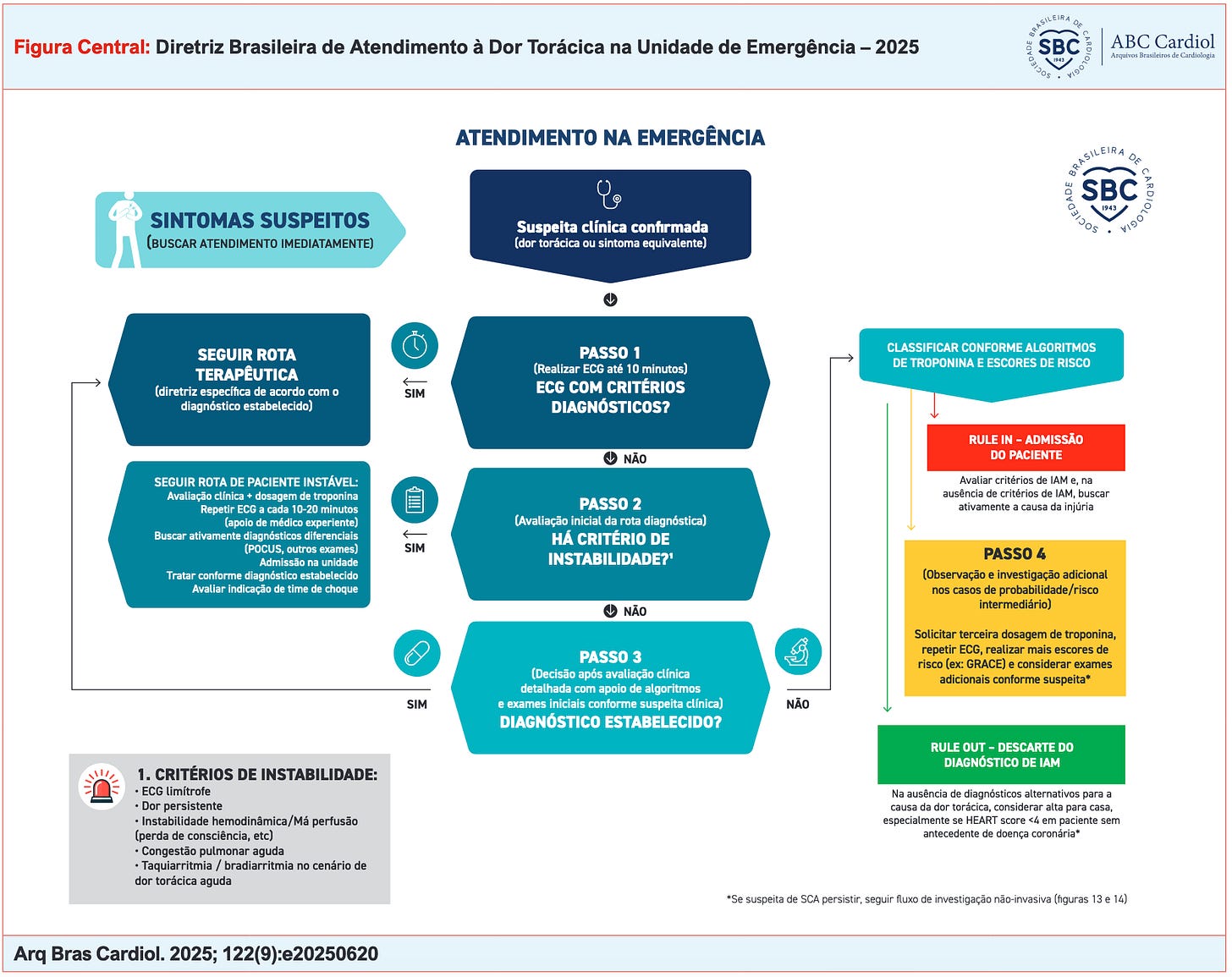 Mas calma: a espera valeu. Chegou um documento completíssimo sobre dor torácica na emergência, com conceitos novos, fluxos claros e muito mais atualizados do que os gringos (sem clubismo, mas em vários pontos a nossa diretriz deixa europeus e americanos parecendo ultrapassados rs).