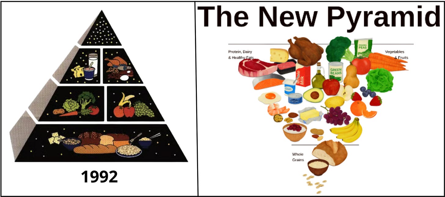 Essa lógica difere, por exemplo, do Guia Alimentar para a População Brasileira, que desloca o foco da quantidade para o tipo de alimento, dando prioridade a gorduras de fontes vegetais e ao padrão alimentar como um todo.