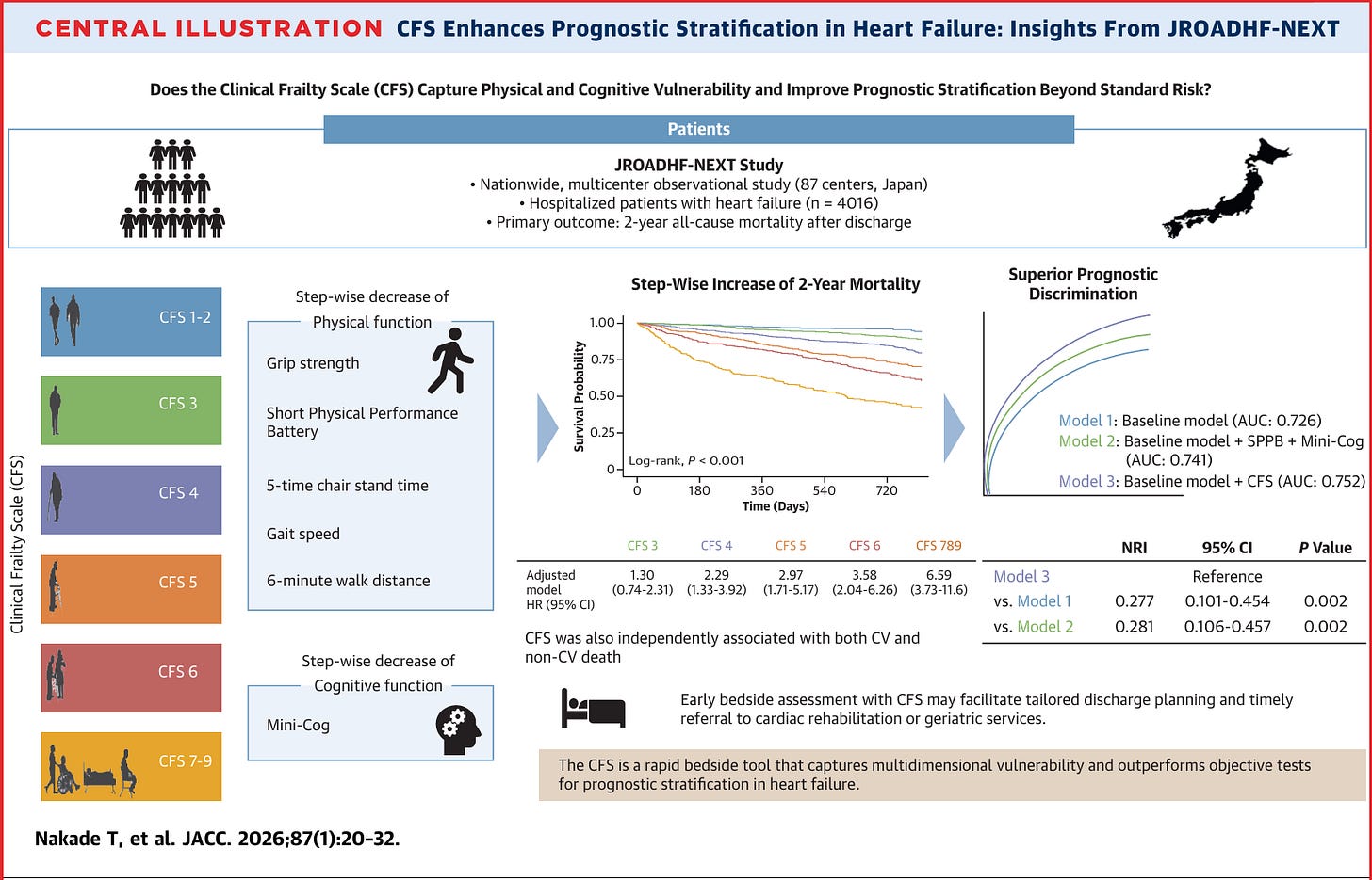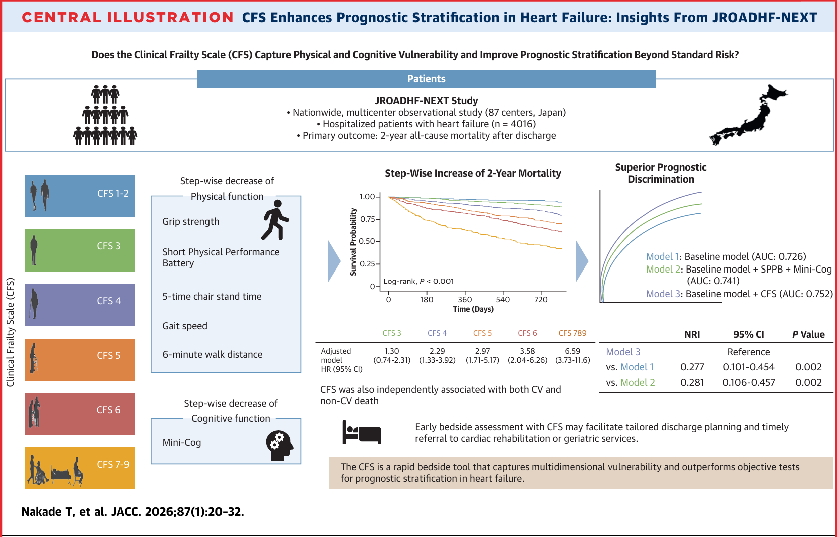 Usando o grande registro japonês JROADHF-NEXT, que avaliou quase 4.000 pacientes hospitalizados por insuficiência cardíaca, foi possível demonstrar que uma ferramenta simples, aplicada à beira do leito, consegue adicionar relevante valor prognóstico.