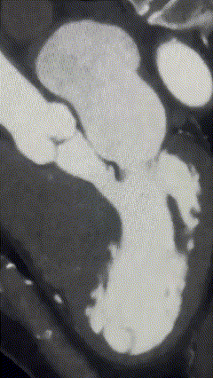 E essa cardiopatia hipertrófica obstrutiva com movimento de SAM da valva mitral vista à angiotomografia? Esse paciente estava em programação de realização de ablação do septo por radiofrequência.