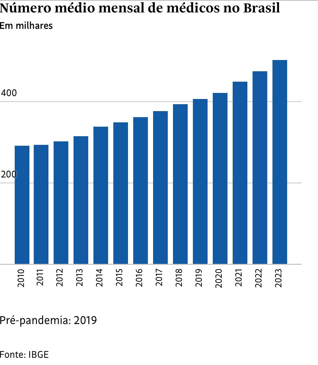 O jornal Folha de São Paulo publicou uma matéria que destaca que o número de médicos atuantes no Brasil cresceu 23,6% desde 2019.