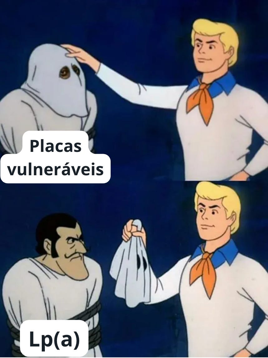 Lp(a), por outro lado, não teve relação com o volume total de placas, mas sim com a presença de placas focalmente vulneráveis — aquelas com maior risco de ruptura, mesmo sem obstrução significativa!