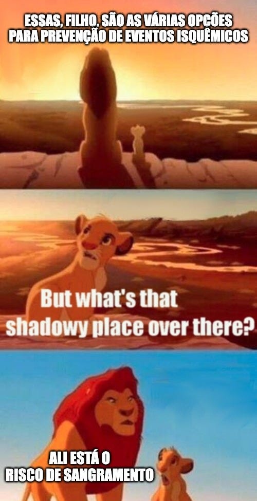 Mesmo com antiagregantes, o risco residual segue alto. A pergunta que fica é: dá pra ir além sem pagar o preço do sangramento?