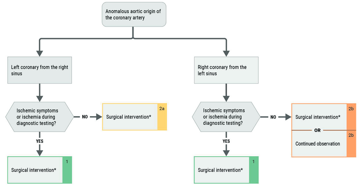 Na edição da semana passada, trouxemos um caso de origem anômala do TCE. A conduta nesses casos é essencialmente cirúrgica nesses casos, conforme proposto na última diretriz de cardiopatias congênitas do ACC/AHA.