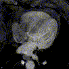 Observe esse tumor intracardíaco visto à ressonância magnética cardíaca, com acometimento do átrio direito que atravessa o plano da valva tricúspide em direção ao ventrículo direito, e leva a comprometimento da valva.