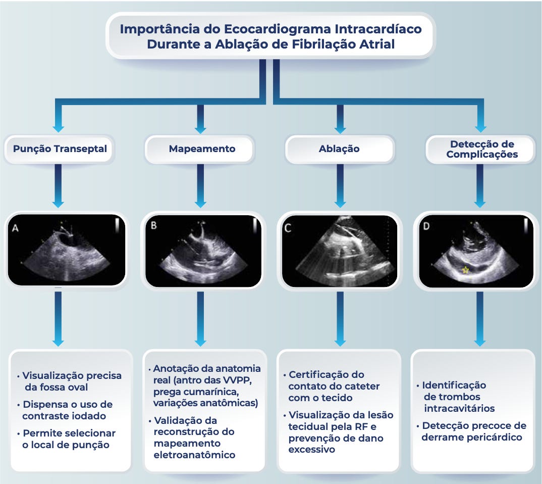 O ICE já é uma realidade durante a ablação, em diversos centros. A diretriz brasileira de FA 2025 trouxe um tópico específico destacando seus múltiplos papéis durante a ablação: