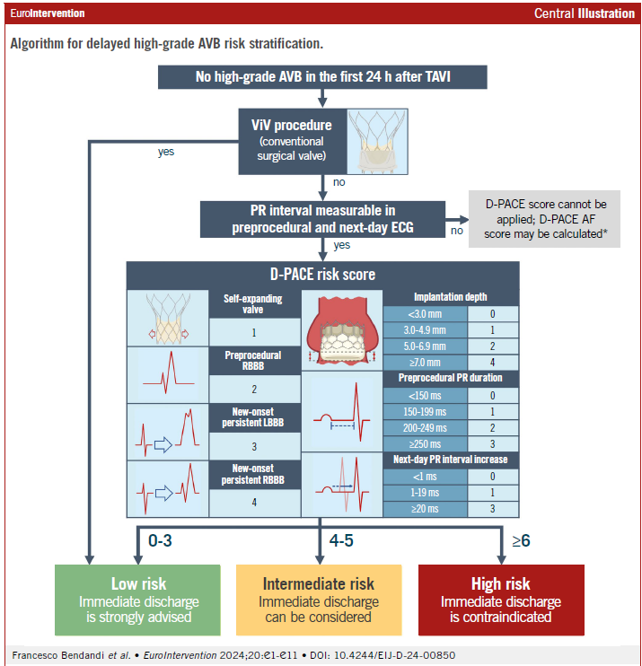 Para diminuir o susto de um bloqueio inesperado, síncope ou parada cardíaca em pacientes submetidos ao TAVI, foi proposto o escore D-PACE que prediz a ocorrência de BAV avançado entre 24h a 30 dias após o TAVI.